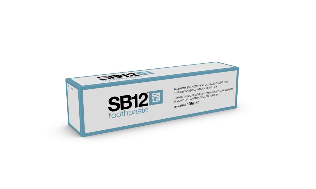 SB12-hammastahnan koostumus torjuu pahanhajuista hengitystä ja antaa tehokkaan suojan kariesta vastaan, sillä natriumfluoridi vahvistaa hammaskiillettä.