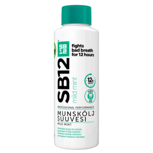 - Alkoholiton: SB12 Mild Mint- suuvesi ei sisällä alkoholia, joka voi ärsyttää ja kuivattaa suuta