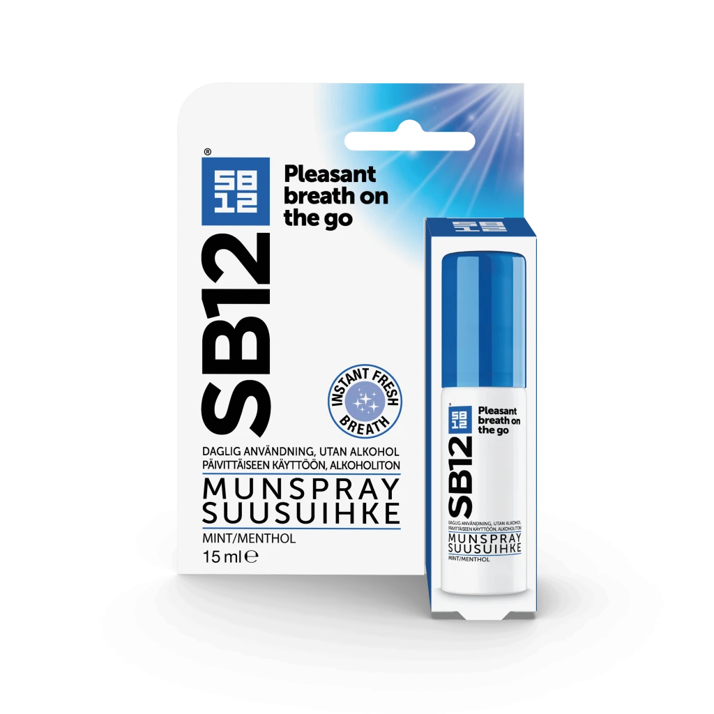 SB12 Sprayn avulla voit kokea välittömästi raikkaan hengityksen, sillä sen koostumus neutraloi pahanhajuista hengitystä aiheuttavia aineita, jotta voit tuntea olosi varmaksi missä tahansa!